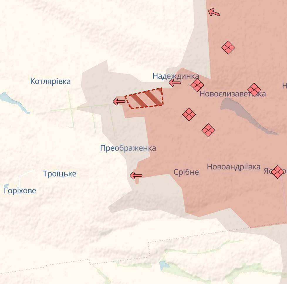 Також росіяни, за даними DeepState, просунулися біля Архангельського (схід Покровська) та Надєждінки (біля кордону з Дніпропетровською областю).