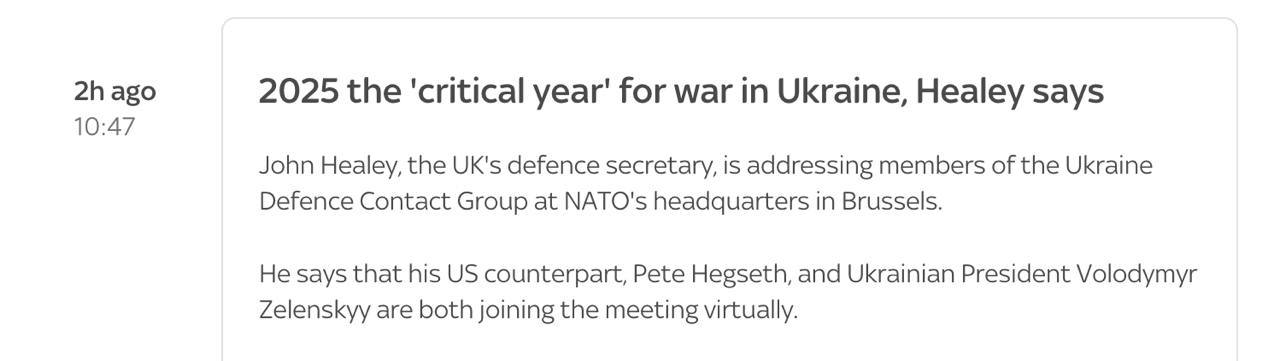 12:59 Цей рік стане "критичним" для війни в Україні, заявив міністр оборони Британії Джон Хілі на засіданні "Рамштайну".