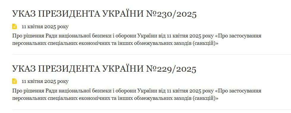 Відповідні укази за номерами №229/2025 №230/2025 опубліковані на сайті Офісу президента.