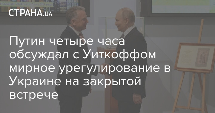 Президент РФ Володимир Путін та спецпосланник Дональда Трампа Стівен Уіткофф завершили переговори у Санкт-Петербурзі. Вони тривали понад 4 години.