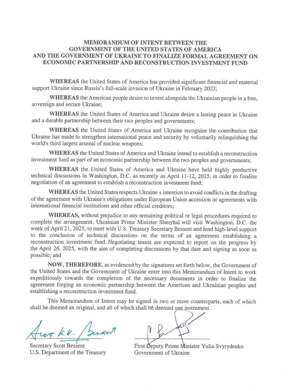 Нагадаємо, міністр економіки України Юлія Свириденко повідомила, що 17 квітня Україна та США підписали меморандум про копалини.