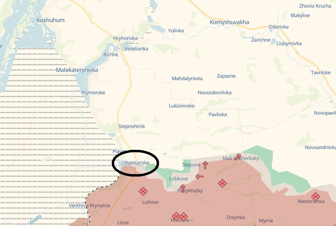 18.36 Армія РФ просунулась у районі Кам'янського Запорізької області та в Дніпроенергії (південний захід Донецької області), повідомляє Deep State.
