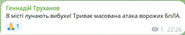 22.29 Вибухи в Одесі, повідомляє мер міста Труханів.