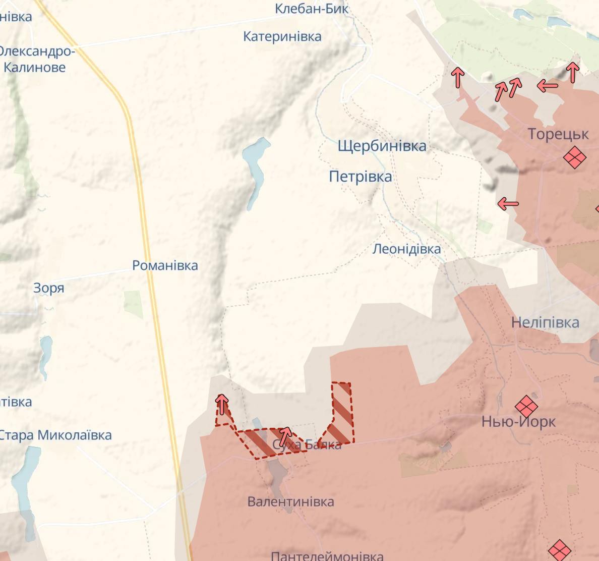 Армія РФ просунулася на північ від Константинополя на Курахівському напрямку, а також біля траси на південь від Торецька. Про це повідомляє військовий паблік Deep State.