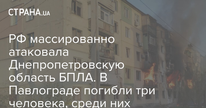 РФ масовано атакувала Дніпропетровську область БПЛА. У Павлограді загинули троє людей, серед них дитина