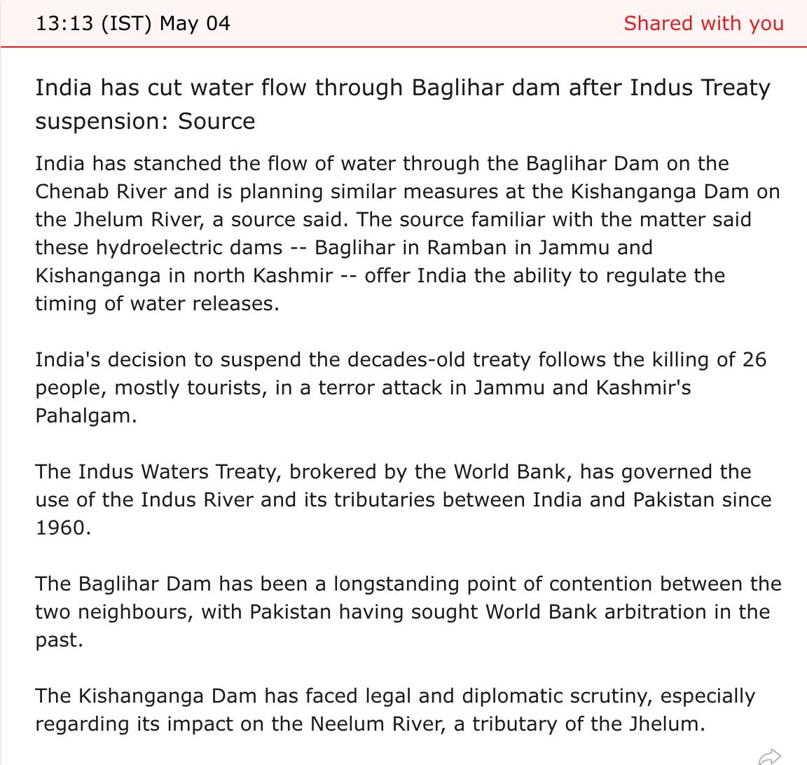 Нью-Делі також планує перекриття греблі Кішангангу на річці Джелум. Обидві ці споруди дозволяють Індії регулювати час скидання води та є предметами суперечки з Пакистаном, яка залежить від цієї води.