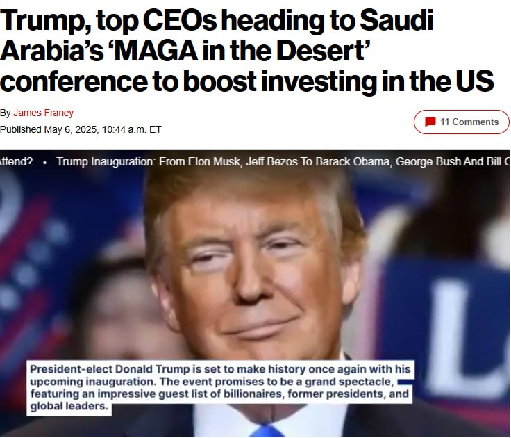 Як пише видання, захід, неофіційно названий "MAGA у пустелі", приурочений до візиту Трампа до регіону та передбачає підписання угод на суму від 600 мільярдів доларів у сферах оборони, штучного інтелекту (ІІ), енергетики та медицини.