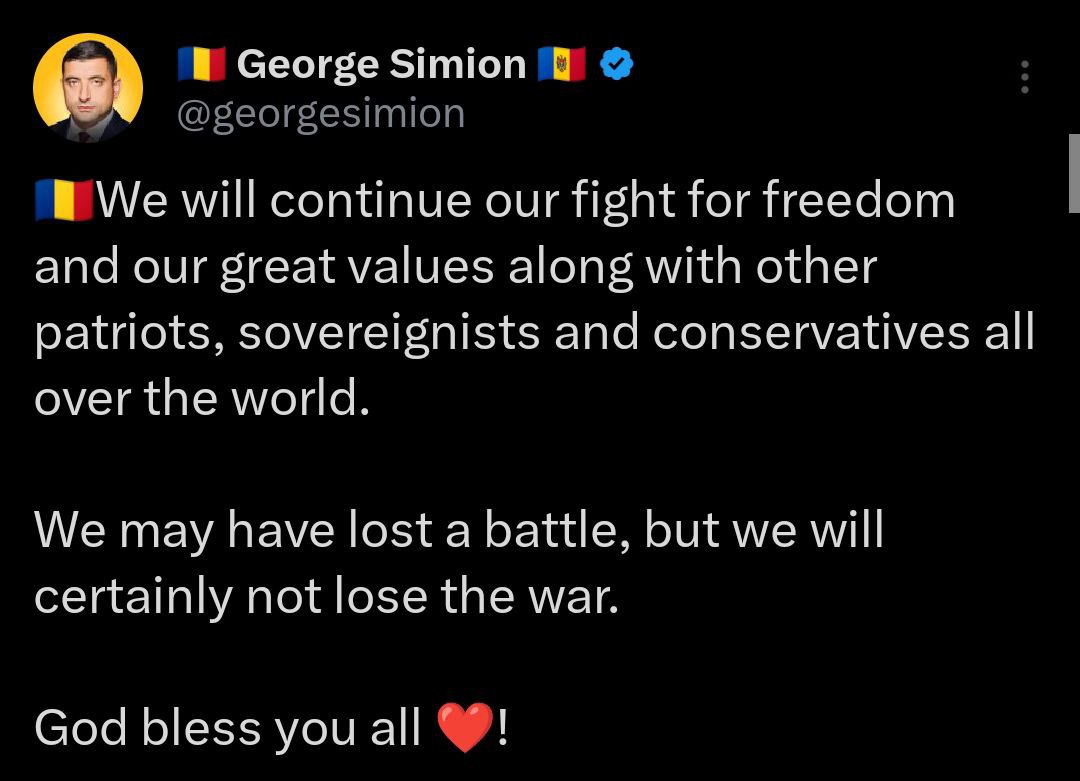 Сіміон обіцяє продовжити боротьбу "у союзі з консерваторами всього світу".