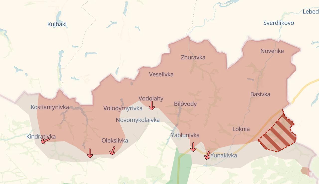 Тобто росіяни продовжують наступати на північ від Куп'янська на правому березі річки Оскол.