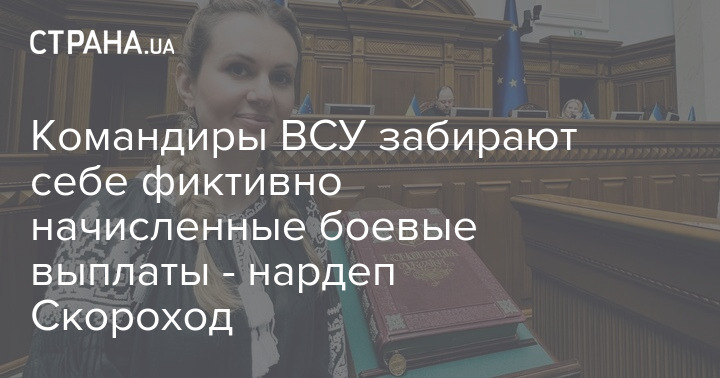 "У нас людям, які ніяким чином не знаходяться на передовій, нараховують сотку, потім ці гроші забирають. Або коли військових використовують для того, щоб вони будували будинки командирам або ж робили ремонти в їхніх нових квартирах і так далі, і на них нараховують гроші, які вони потім перераховують цим же командирам. Або коли просто у хлопців вимагають, тому що, як повідомила Скороход.