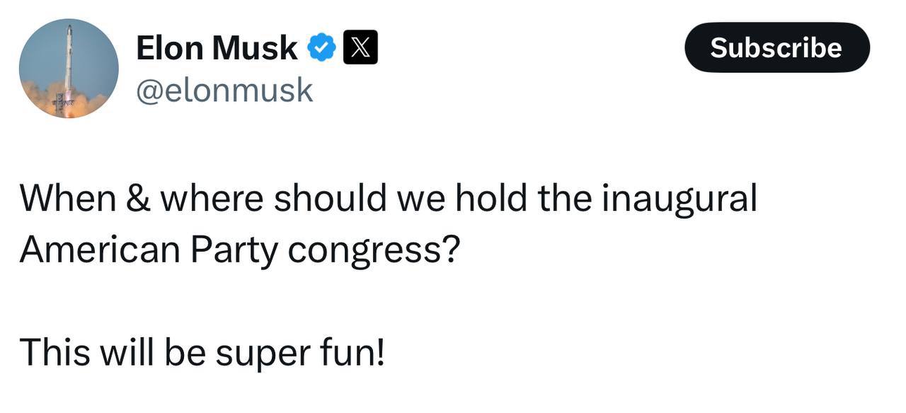 Раніше він такожпровів кілька опитувань у своєму Х-акаунті, де більшість висловилися за створення такої партії.