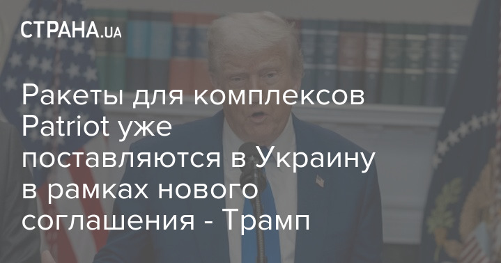 Ракети для комплексів Patriot вже постачаються до України в рамках нової угоди. Про це заявив президент США Дональд Трамп під час спілкування з журналістами на авіабазі Ендрюс.