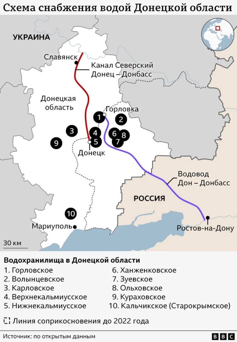 Нагадаємо, що для Донецька з початком повномасштабної війни був перекритий канал "Сіверський Донець - Донбас", який раніше живив його. Його джерело знаходиться на території, контрольованій ЗСУ поблизу Слов'янська, а значна частина річища каналу знаходиться в зоні активних бойових дій. Тому воду і раніше видавали за графіком – раз на дві доби.