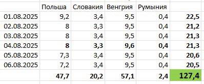 При цьому імпорт із Румунії через ГІС "Орлівка" порівняно з поставками з Угорщини, Польщі та Словаччини невеликий, що відображає таблиця зі статистикою за перші шість днів серпня.