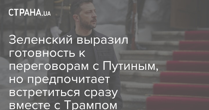 Президент України Володимир Зеленський заявив, що готовий до зустрічі з главою Крем'яча Володимиром Путіним, але вважає за краще відразу зустрітися втрьох разом з американським президентом Дональдом Трампом.