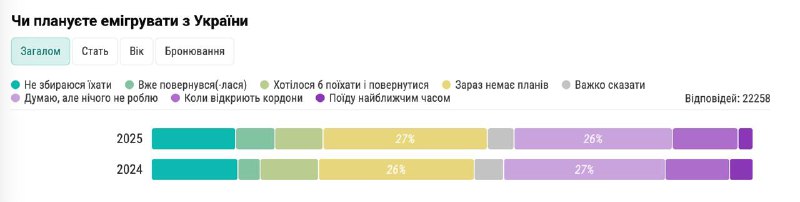 Серед основних причин покинути країну опитані назвали обстріли, мобілізацію та недовіру до влади.
