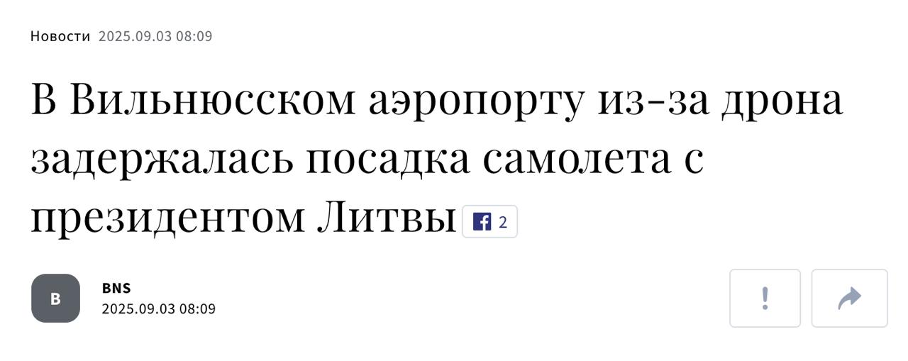 Заявляється, що борт Гітанаса Науседи приблизно півгодини кружляв над центральною частиною Литви через безпілотника біля Вільнюса. Його приналежність поки що невідома.