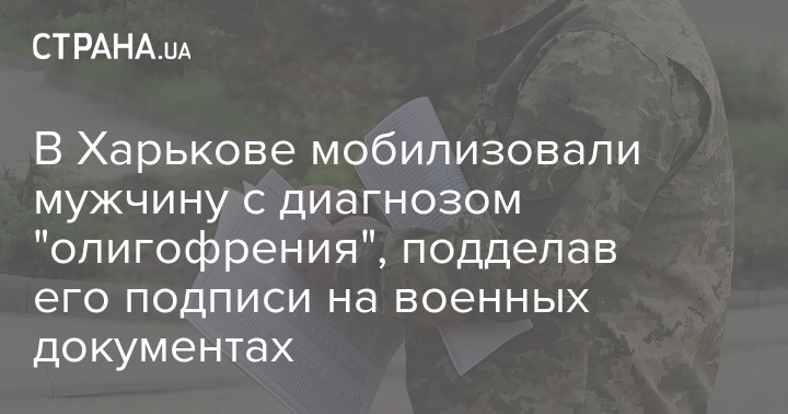 У Харкові мобілізували чоловіка з діагнозом "олігофренія", підробивши його підписи на військових документах