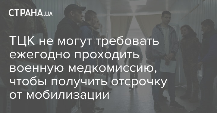 ТЦК не можуть вимагати щорічно проходити військову медкомісію, щоб отримати відстрочку від мобілізації