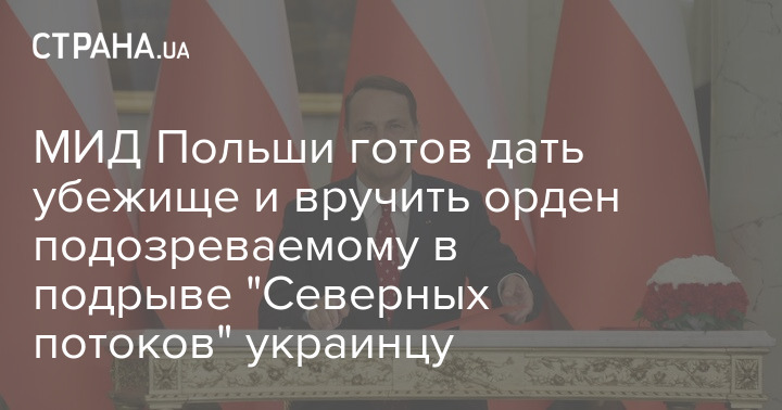 Міністр закордонних справ Польщі Радослав Сікорський заявив керівництву Німеччини, що готовий надати українцеві Володимиру Журавльову, одному з підозрюваних у підриві "Північних потоків", притулок та нагородити його орденом.