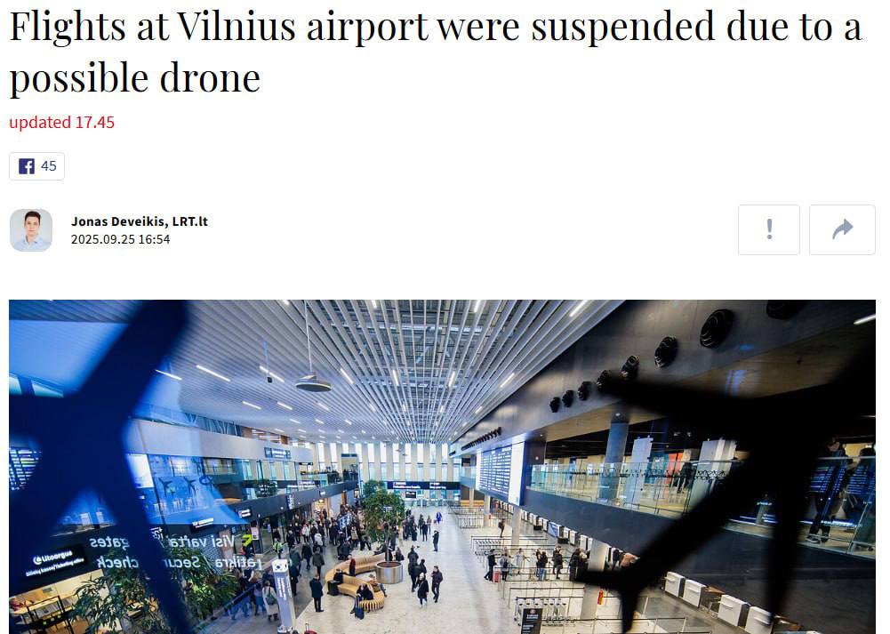 Також безпілотника було помічено у столиці Латвії Вільнюсі. Через це було припинено майбутні авіарейси.