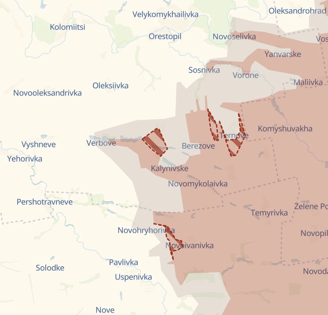 Армія РФ просунулась на двох ділянках у Дніпропетровській області, а також на південь, у Запорізькій, повідомляє Deep State.