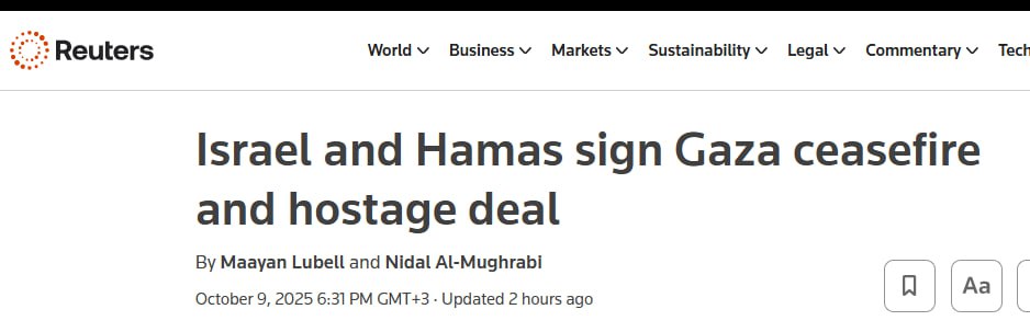 У свою чергу про те, що Ізраїль та ХАМАС підписали угоду про припинення вогню та звільнення заручників у секторі Газа, повідомляє агентство Reuters.