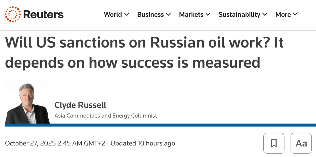 На думку багатьох учасників нафтового ринку західні санкції майже не впливають на російський експорт нафти. Постачання продовжують йти за рахунок обхідних схем, тому нові обмеження провокують лише короткочасне зростання цін, яке потім швидко зникає на тлі стабільних потоків сировини, зазначає Reuters.