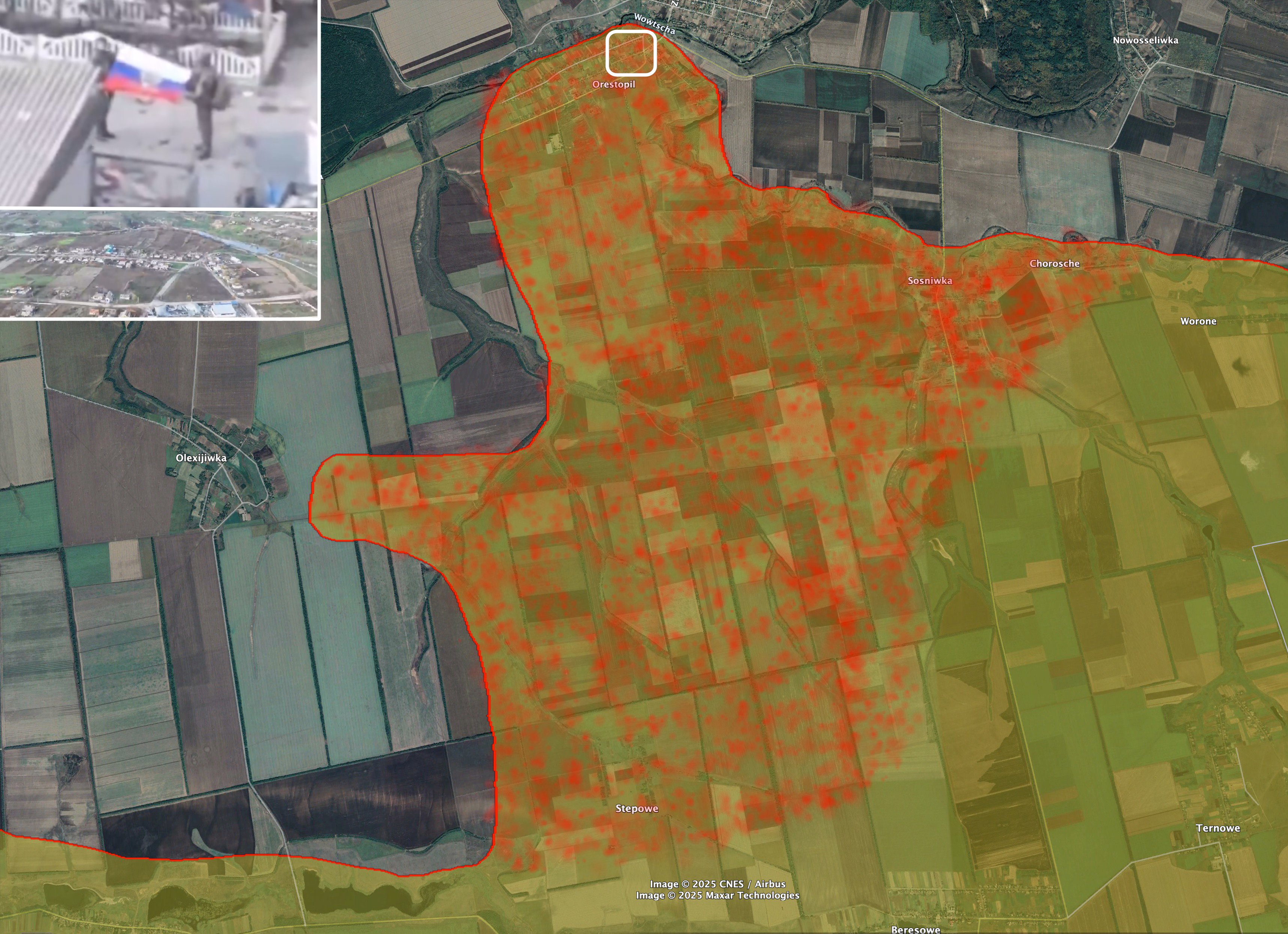 Військовий оглядач німецької газети Bild Юліан Репке пише, що росіяни на Великомихайлівському напрямку захопили не лише Орестополь, а й ще три села - Соснівку, Хороше та Степове.