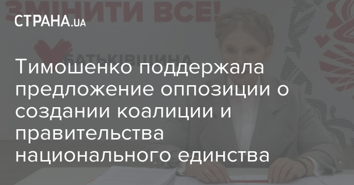 Тимошенко підтримала пропозицію опозиції щодо створення коаліції та уряду національної єдності