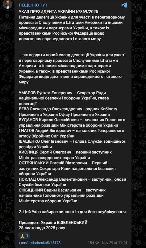 Зеленський призначив секретаря РНБО Умерова замість Єрмака головою делегації на мирних переговорах - Лещенко