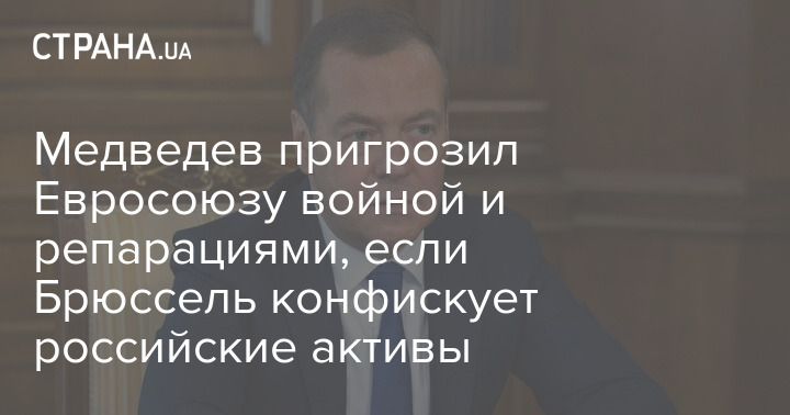 Заступник голови Ради безпеки Російської Федерації Дмитро Медведєв погрожував Європейському Союзу репараціями і навіть війною у разі конфіскації заморожених активів РФ.