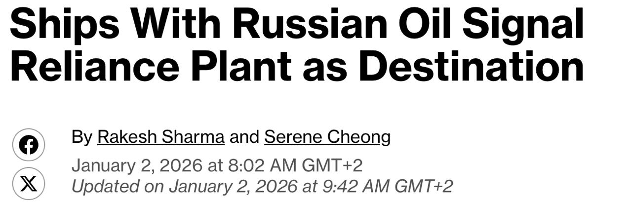 Щонайменше три танкери з російською нафтою марки Urals вказали як наступний пункт призначення найбільший нафтопереробний завод Індії Reliance Industries, якийнещодавно відновив закупівлі чорного золота у Москви.