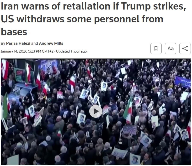 Нагадаємо, агентство також повідомило, що США почали виводити частину персоналу зі своїх військових баз на Близькому Сході після погроз Тегерана завдати по них удару у відповідь у разі атаки Ірану американськими військами.