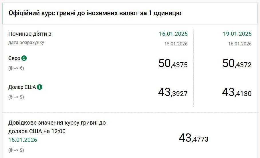 Національний банк України розігнав девальвацію гривні та не зупиняється. Сьогодні за підсумками міжбанківських валютних торгів він встановив на 19 січня, понеділок, новий історичний рекорд з офіційним курсом гривні на рівні 43,4130 грн/$, що на 2 копійки вище за вчорашній рівень.