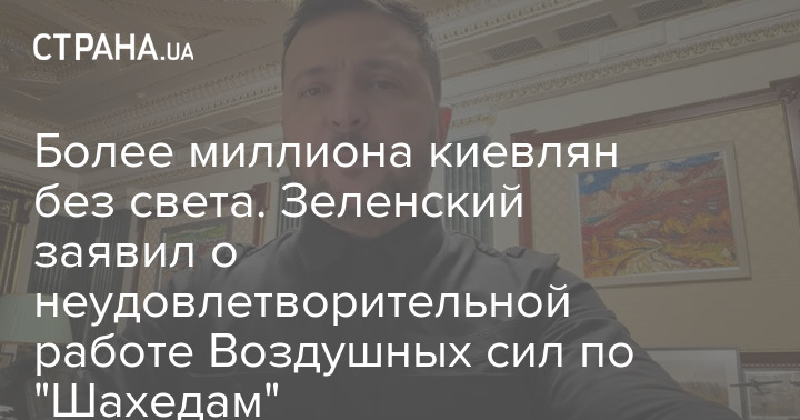 Понад мільйон киян без світла. Зеленський заявив про незадовільну роботу Повітряних сил по "Шахедах"