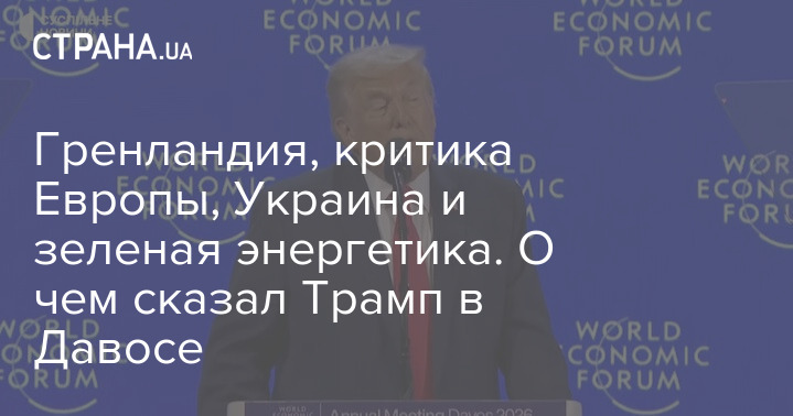 Гренландія, критика Європи, Україна та зелена енергетика. Про що сказав Трамп у Давосі