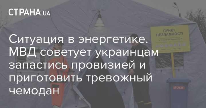 Ситуація у енергетиці. МВС радить українцям запастися провізією та приготувати тривожну валізу