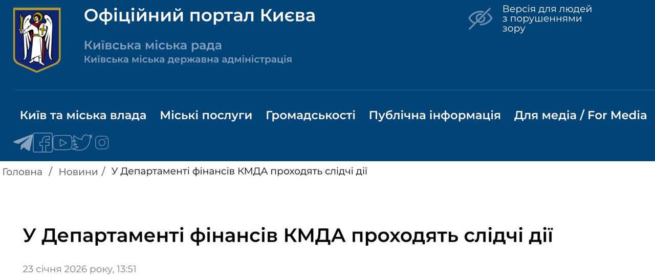 "У департаменті фінансів КМДА відбуваються слідчі дії. Їх здійснюють представники Національної поліції України", - йдеться у повідомленні.