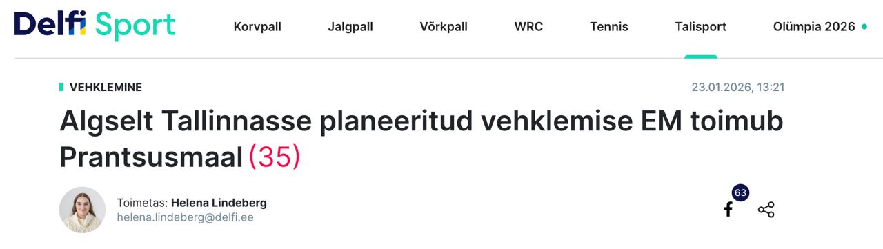 Чемпіонат Європи з фехтування, що планувався в Естонії, пройде у Франції. Зміни відбулися через те, що Таллінн відмовляється видавати візи спортсменам з РФ та Білорусі.