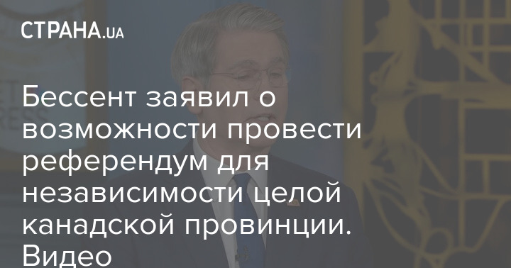 Міністр фінансів США Скотт Бессент заявив про можливе проведення референдуму щодо незалежності провінції Альберта в Канаді.