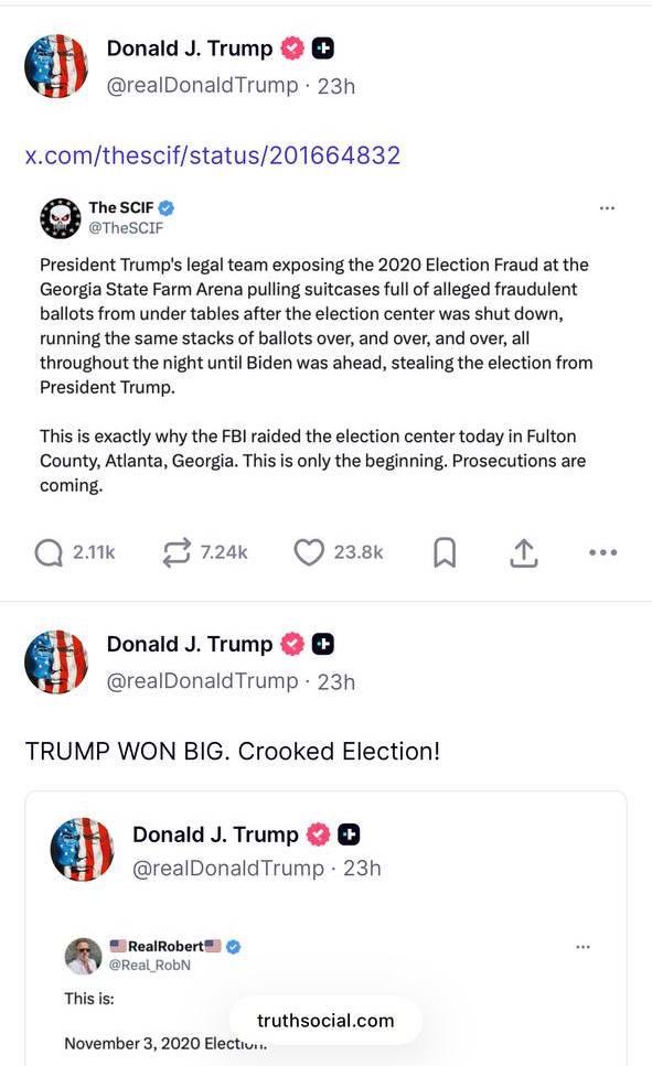 Також він звинувачував ФБР та Міністерство юстиції у бездіяльності проти шахрайства на президентських виборах.