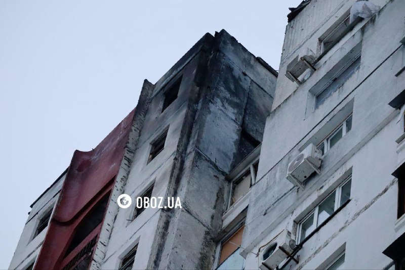 У Дніпровському районі постраждав фасад 9-поверхового житлового будинку та припарковані автомобілі.