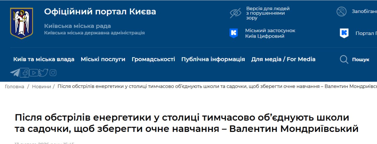 18:16 У Києві тимчасово об'єднують школи та садочки через відсутність опалення, повідомляє КМДА.