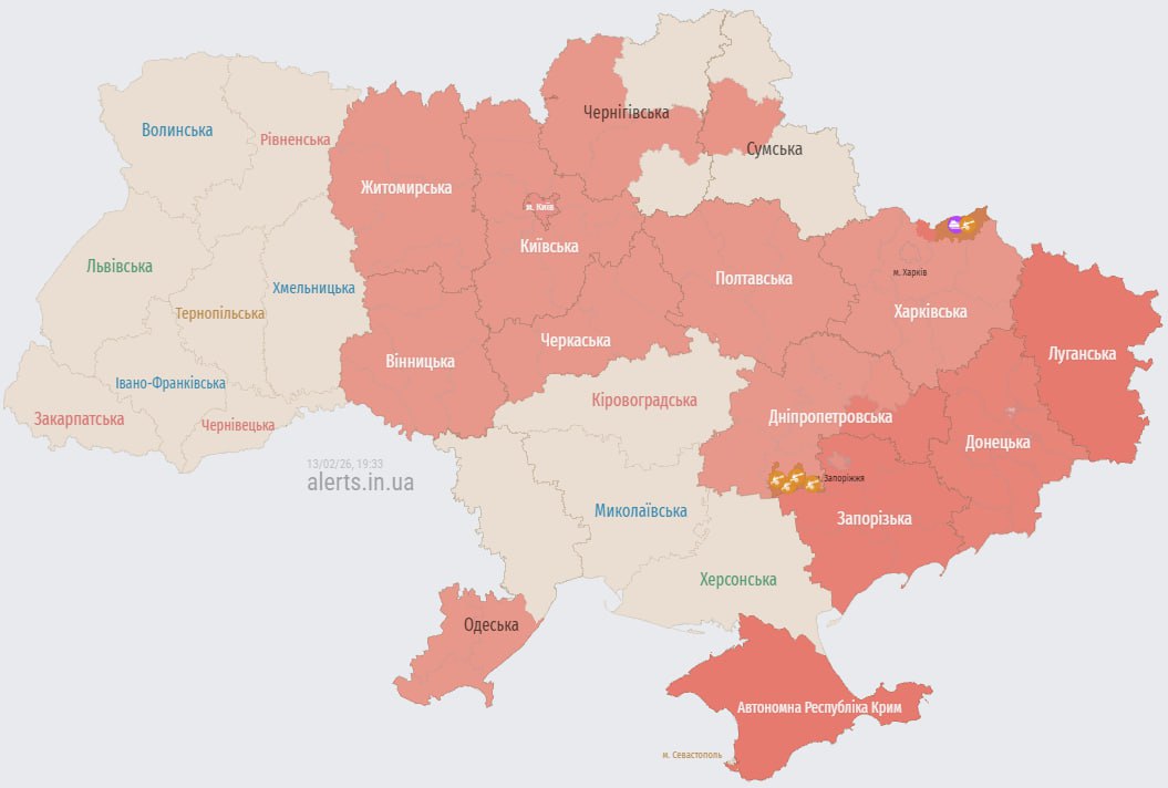 19:33 Тривога у Києві та низці областей через загрозу балістики.