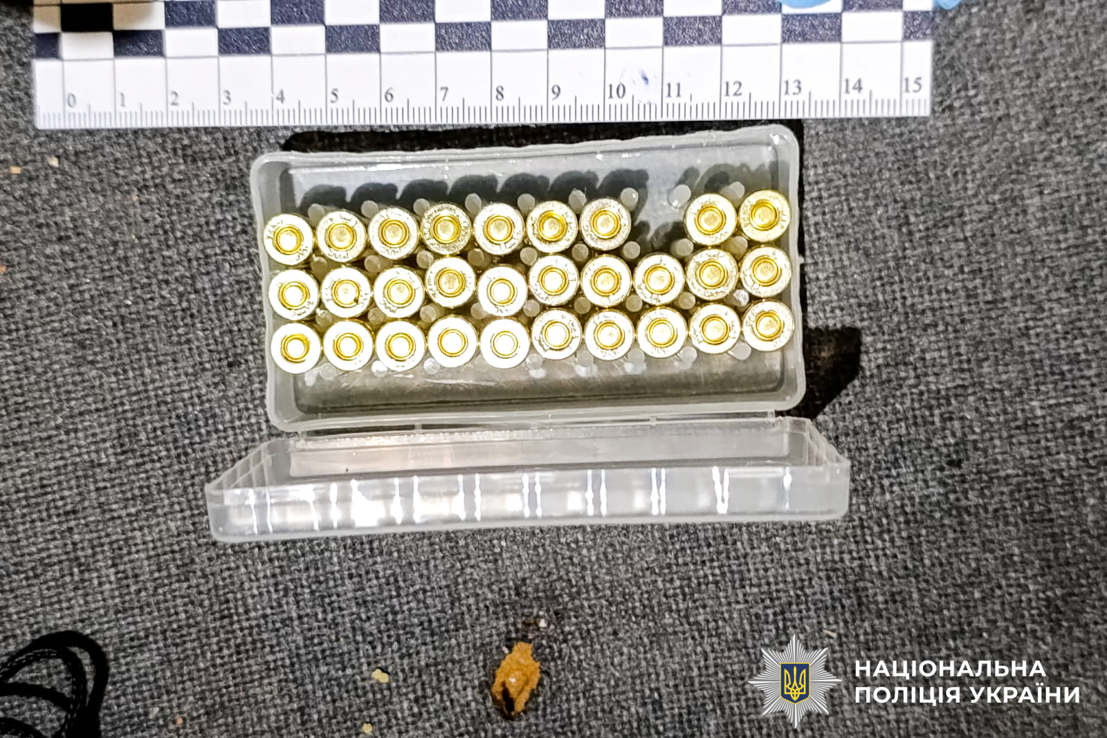 Під час обшуку поліцейські виявили та вилучили пістолет, автоматичну зброю, три пневматичні гвинтівки, штик-ніж, 29 холостих патронів, 7 гільз, трубку для куріння та фольгу із шарами психотропної речовини.