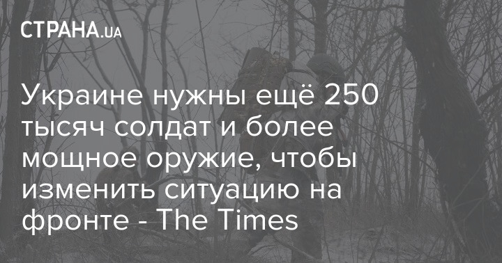 "Щоб перемогти або хоча б змінити хід війни, Україні необхідні як мінімум 250 тисяч додаткових військових і набагато потужніше озброєння", - заявило The Times джерело в НАТО.