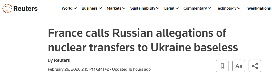 Франція відкинула звинувачення Служби зовнішньої розвідки РФ у намірі передати Україні ядерну зброю або "брудну бомбу".
